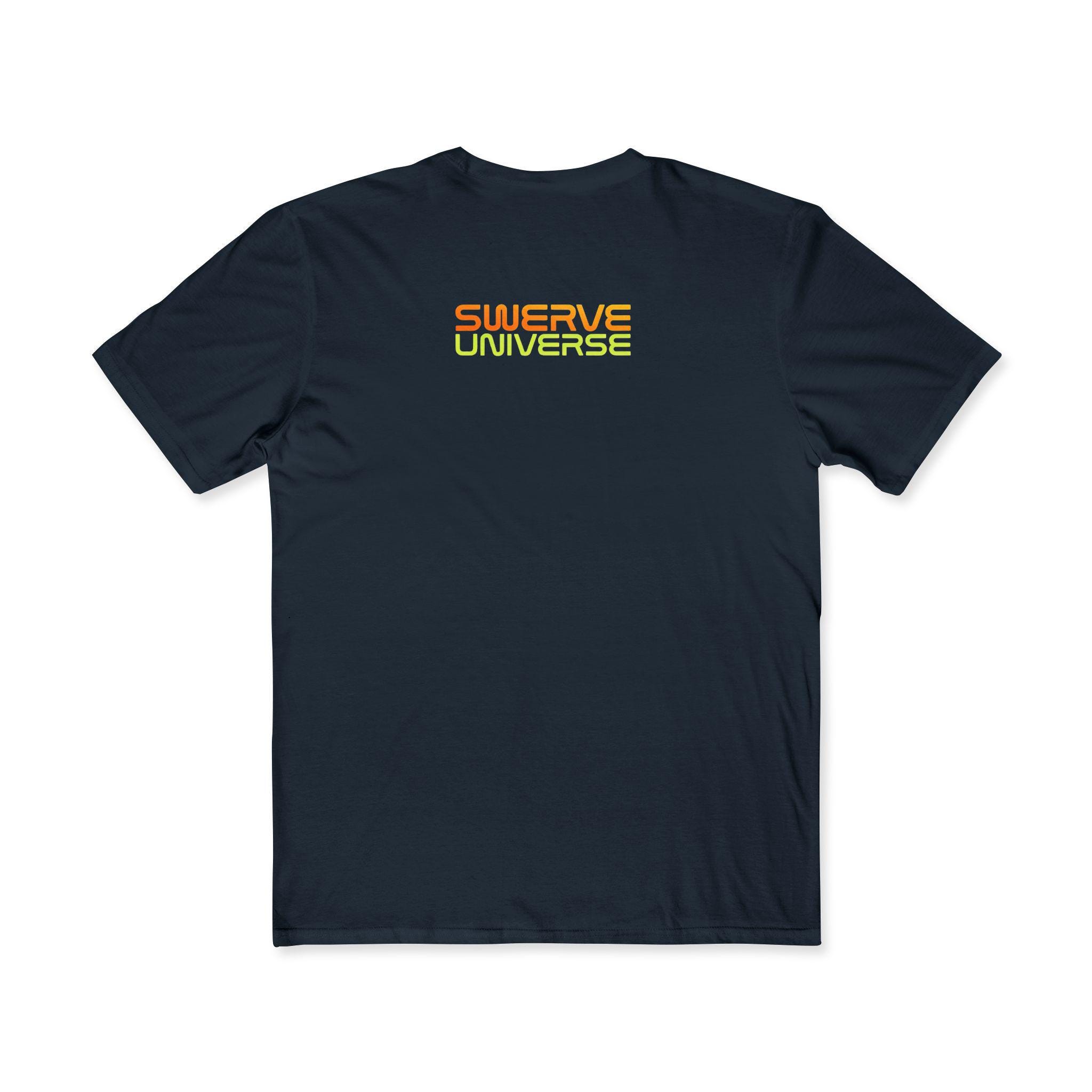 A lightweight, semi-slim tee that brings playful, retro-futuristic energy to everyday wear. The front sports a colorful 3D-style graphic streaked with a rainbow trail and star, while the upper back carries a subtle gradient wordmark—small details that pop against the soft white knit. It’s breathable and unrestrictive, made with soft cotton and a smooth ribbed collar that holds its shape. Wear it for sunny street days, laid-back meetups, or anytime you want a little bold color with casual comfort.